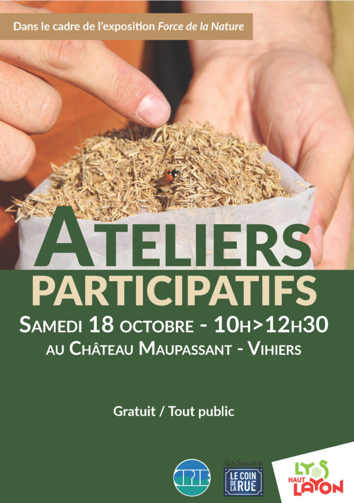 Dans le cadre de l’exposition Force de la Nature, le CPIE et le CSC le Coin de la Rue vous invitent à leurs ateliers participatifs ce 18 octobre, de 10h à 12h.