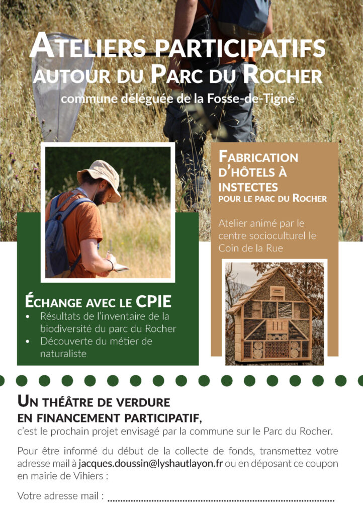 - Création d’hôtels à insectes qui seront installés au parc du Rocher