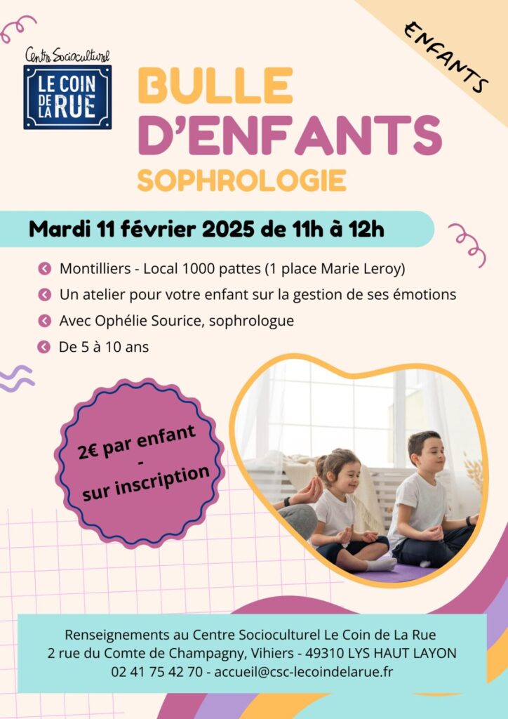 Un atelier pour votre enfant sur la gestion de ses émotions. Avec Ophélie Sourice, sophrologue.