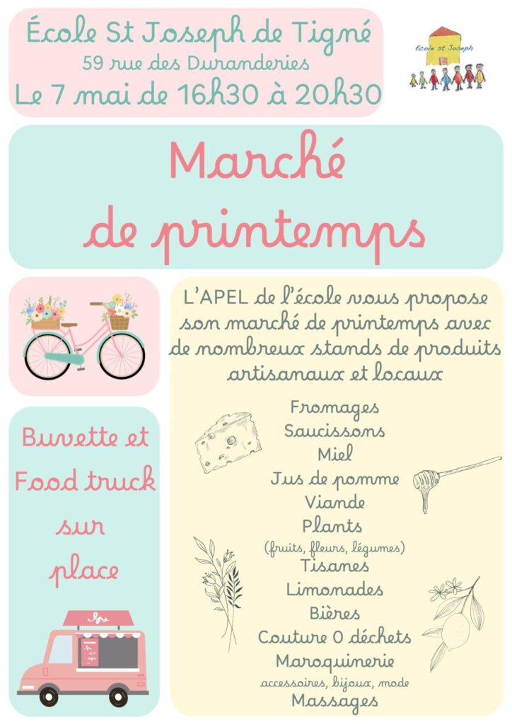 Pour la 2ème année un marché de printemps est organisé dans la cour de l’école Saint joseph de Tigné.