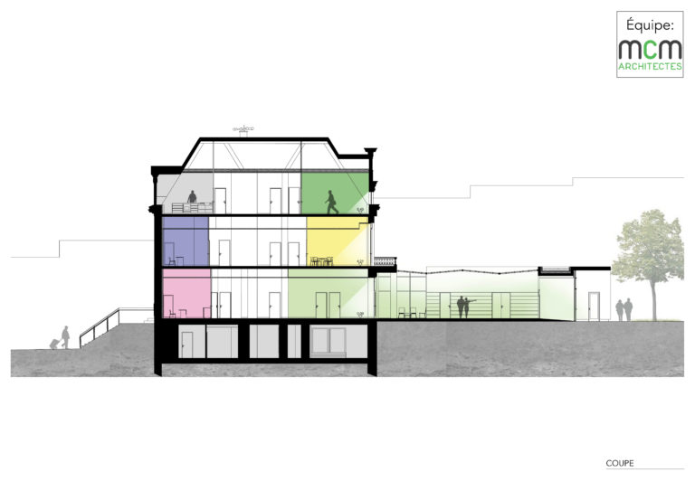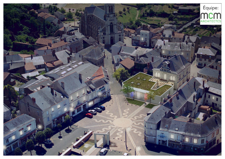Tous les espaces accueillant le public seront situés au rez-de-chaussée. La toiture de l’extension sera végétalisée. Le monument aux morts a été transféré vers la façade arrière du bâtiment actuel.